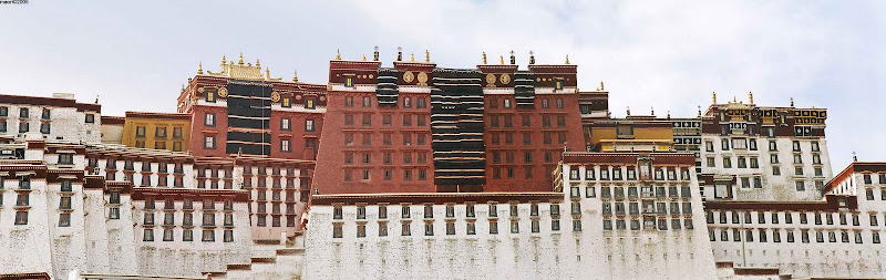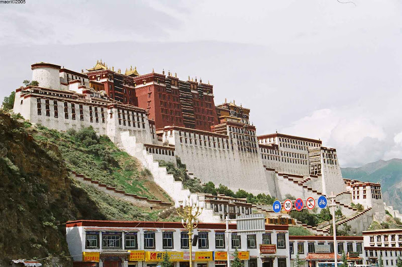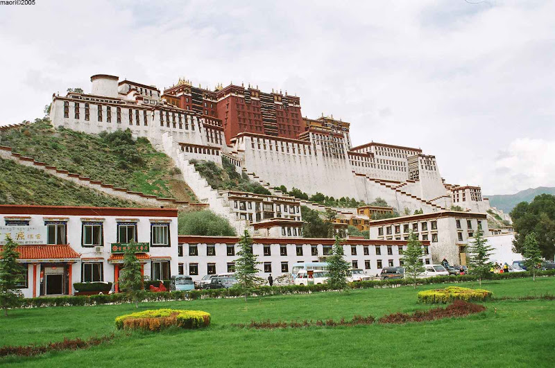 1. The Potala from the Potala Square. In the middle is the Red Palace. On the right is the White Palace, former living quarters of the Dalai Lama.