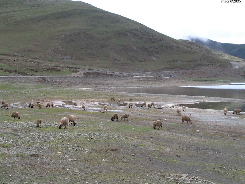 Yamdrok Tso is one of the three largest sacred lakes in Tibet. It is also Tibet's largest freshwater lake and is over 72 km long. It is a turquoise lake fed by melted snow through numerous small stream sand has a outlet stream at its far western end. The lake is surrounded by many snow-capped mountains, the most notable of which is Kula Kangri (7,554m) which is visible on the horizon on the Bhutanese border. From this vantage point you can see why the Tibetans consider Yamdrok Tso to be a sacred lake. Unfortunately when we were there it was very cloudy. Otherwise Kula Kangri can be seen on the far side of the lake in photo 5.