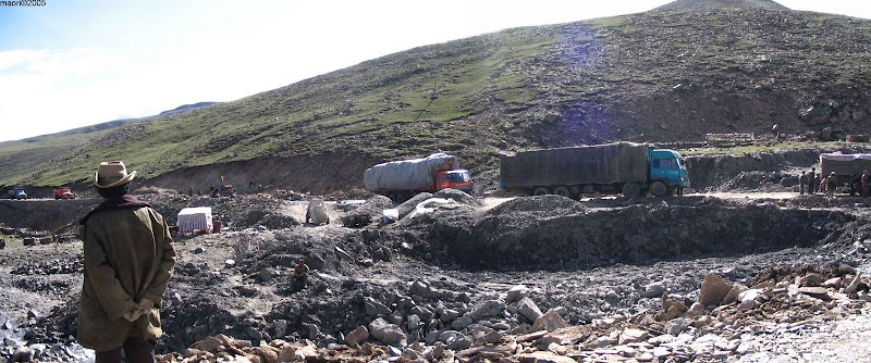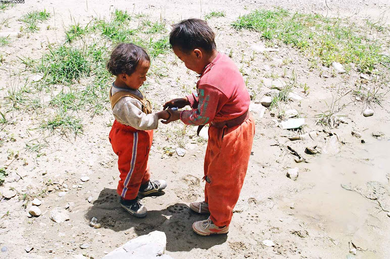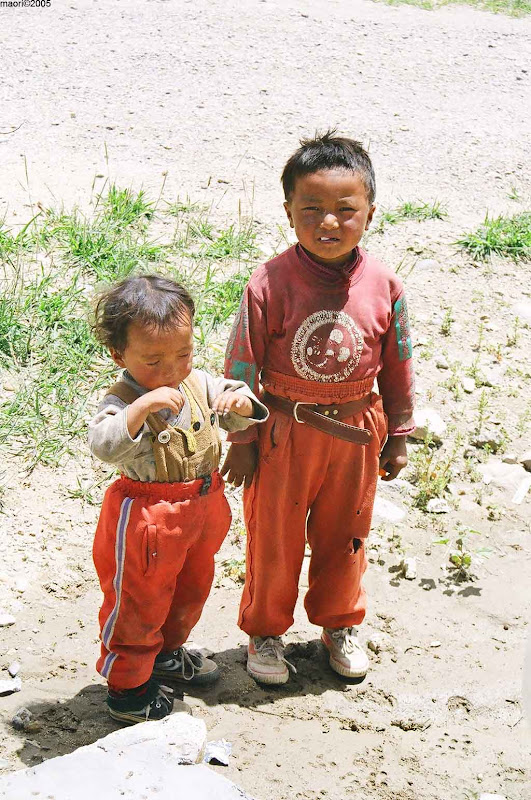 We travelled the same road back to Shigatse. The photos here mainly show the poor conditions of the road, workers working, and a group of local children we encountered.
